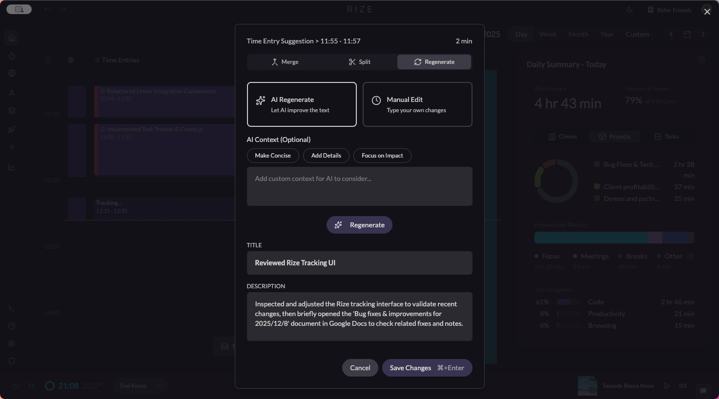 We’ve shipped a major round of improvements to Time Entry Suggestions, focused on making reviewing, editing, and refining your day faster, clearer, and more reliable.